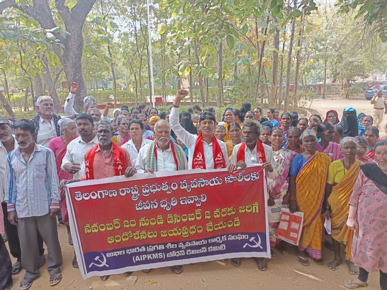 అఖిలభారత ప్రగతిశీల వ్యవసాయ కార్మికసంఘం (AIPKMS) జిల్లా కమిటీ సభ్యుడు జి. సీతారాం, రాష్ట్ర ప్రభుత్వాన్ని కఠినంగా విమర్శిస్తూ, వ్యవసాయ కార్మికులకు ఇచ్చిన హామీలను అమలు చేయాలని డిమాండ్ చేశారు. శనివారం బోధన్ పట్టణంలో మహాలక్ష్మి మందిర్ నుండి తాసిల్దార్ కార్యాలయం వరకు నిర్వహించిన ర్యాలీ అనంతరం ధర్నా చేపట్టారు. ఈ సందర్భంగా 12వేల రూపాయల జీవనభృతి అమలు చేయాలని, లేదంటే పెద్దఎత్తున ఆందోళనలు చేపడతామని హెచ్చరించారు.