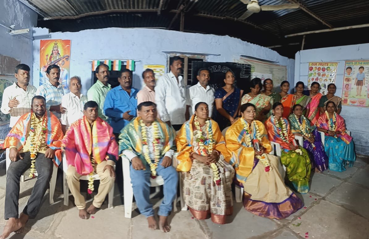 రుద్రుర్: ఉపాధ్యాయుల వృత్తిలో ఉన్న స్నేహితులను ఘనంగా సన్మానించిన బాల్య మిత్రులు.