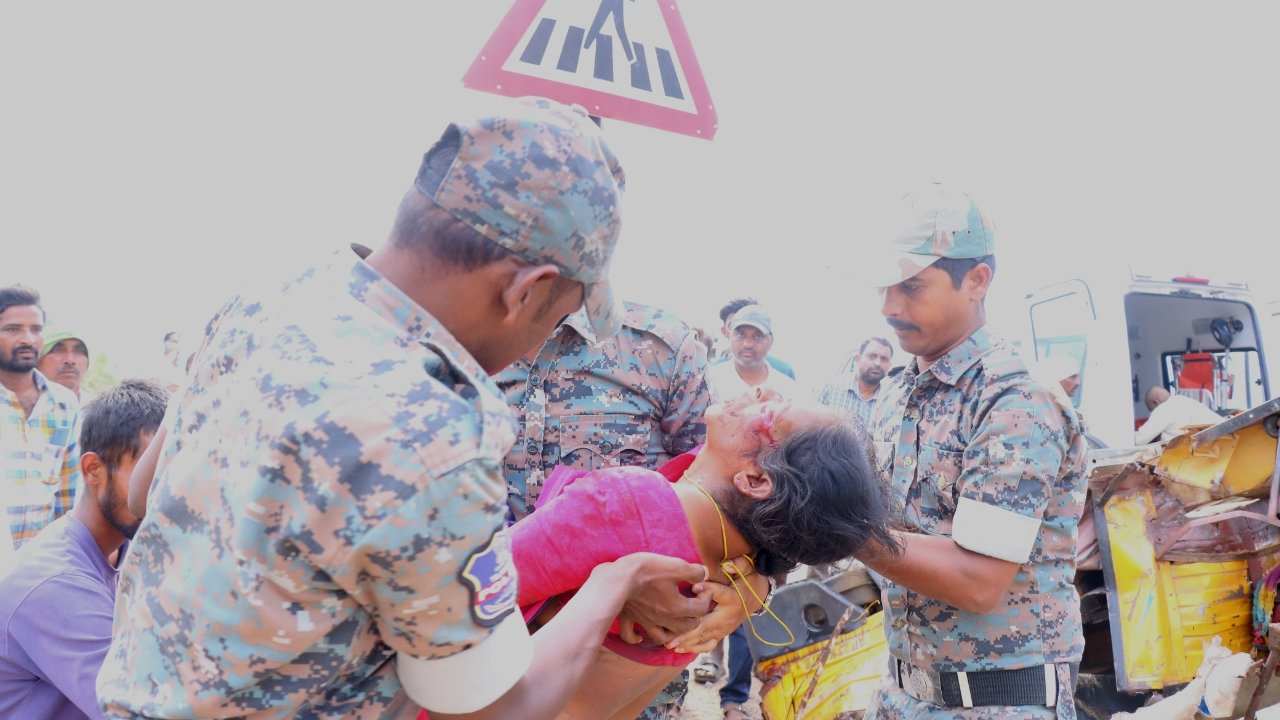 ఎస్పీ ఆదేశాలతో సిబ్బంది అక్బర్, హరీష్, యాదగిరి చాకచక్యంగా వ్యవహరించి క్షతగాత్రులను వాహనం నుంచి బయటకు తీశారు. అక్కడ ఒక్క స్ట్రెచర్ మాత్రమే అందుబాటులో ఉండటంతో, కాలు విరిగిన మహిళను కానిస్టేబుల్ యాదగిరి స్వయంగా చేతులపై ఎత్తుకుని అంబులెన్స్లో ఎక్కించి ఆసుపత్రికి తరలించారు. అనంతరం ప్రమాదానికి గురైన వాహనాన్ని రోడ్డుపక్కకు జరిపి ట్రాఫిక్ను సాఫీగా సాగేందుకు చర్యలు తీసుకున్నారు. వేగంగా స్పందించి ప్రాణాలను కాపాడిన సిబ్బందిని జిల్లా ఎస్పీ అభినందించారు.