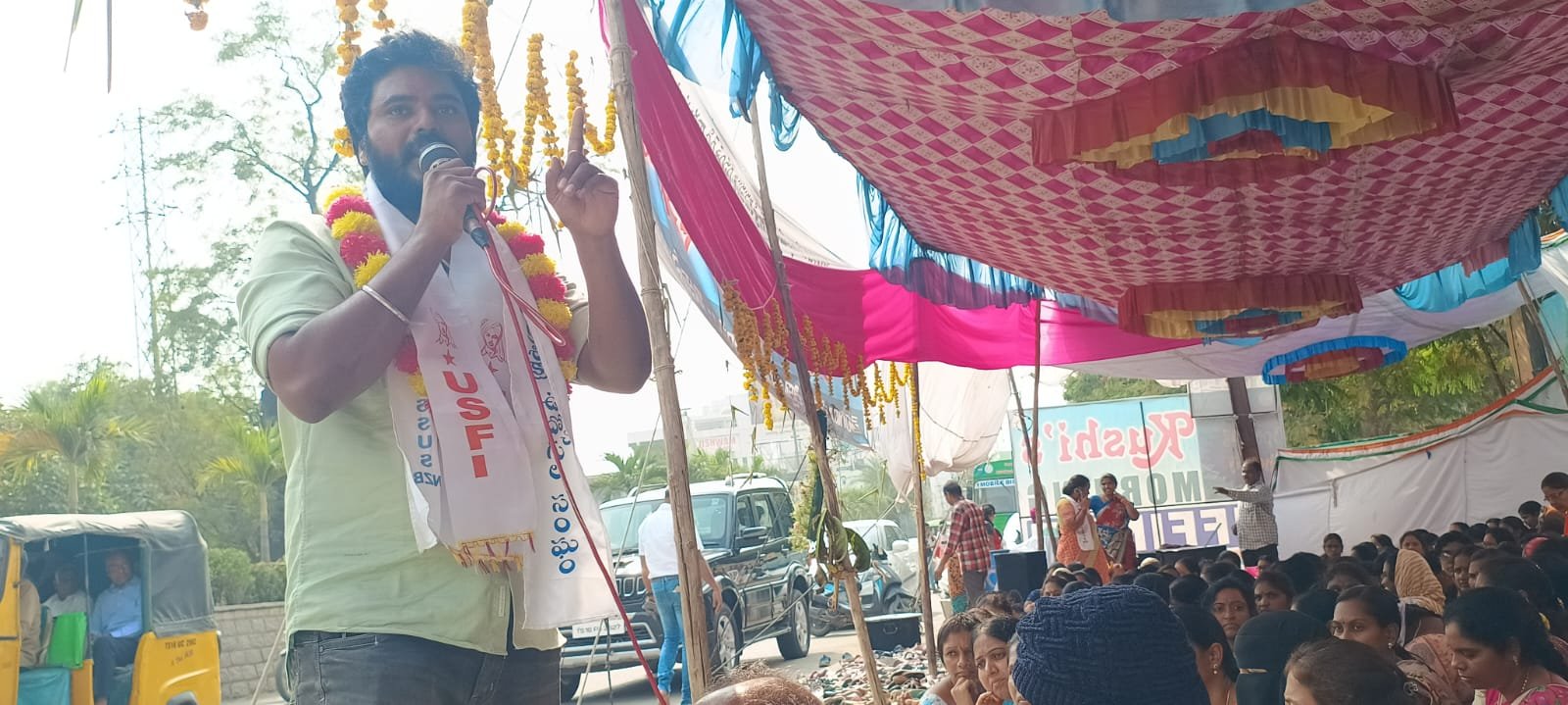 భారత ఐక్య విద్యార్థి ఫెడరేషన్ (యుఎస్ఎఫ్ఐ) ఆధ్వర్యంలో సమగ్ర శిక్ష అభియాన్ ఉద్యోగుల సమ్మెకు పూర్తి మద్దతు తెలపింది. నేడు నిజామాబాద్ జిల్లా కేంద్రంలోని ధర్నా చౌక్ వద్ద యుఎస్ఎఫ్ఐ జిల్లా కార్యదర్శి పెద్దిసూరి సమ్మెకు మద్దతుగా పాల్గొన్నారు.